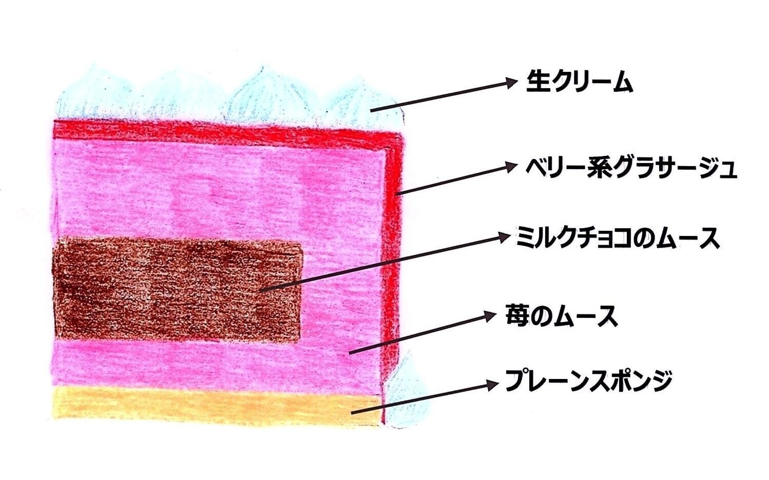 クリスマスの主役 サンタクロース!ベリー系の赤いソースの中は、つぶつぶ感を残した自家製苺ムース。中心には相性抜群のミルクチョコムースを仕込みました。みんなが笑顔になるうれしい甘さ♥